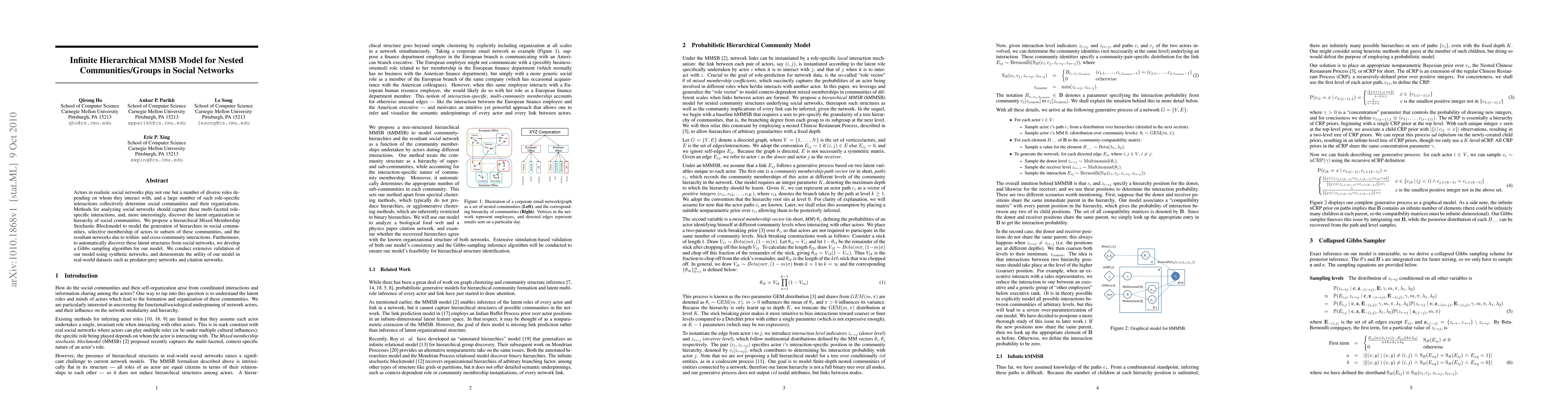 This paper proposes a hierarchical Mixed Membership Stochastic Blockmodel to capture multi-faceted role-specific interactions in social networks, revealing the latent organization of nested communities. It introduces a Gibbs sampling algorithm for automatic discovery of these structures and validates the model using synthetic and real-world datasets.