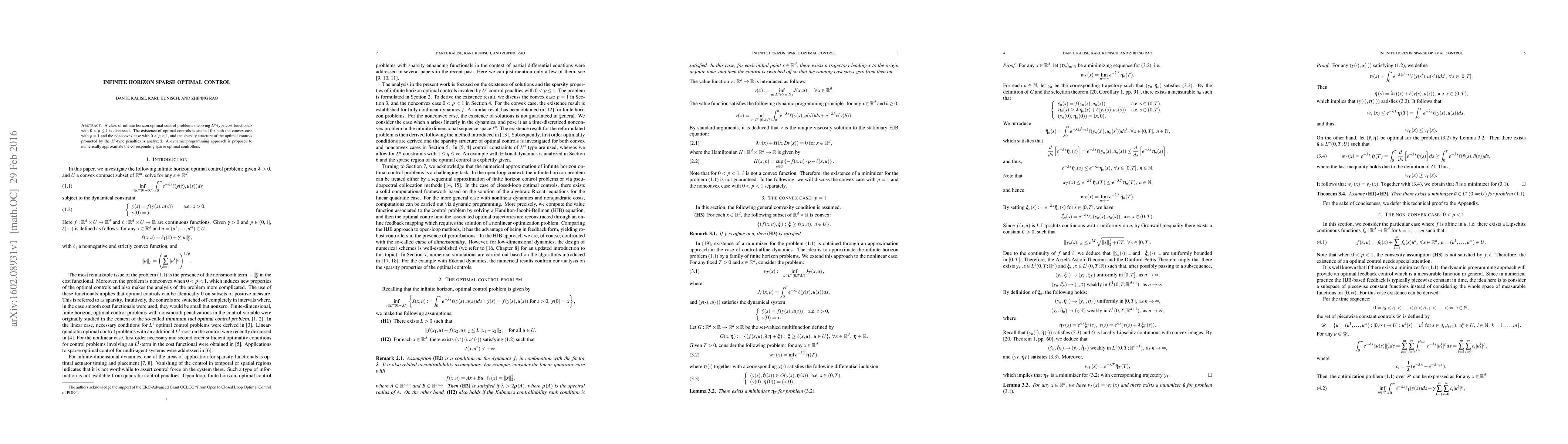 This paper investigates infinite horizon optimal control problems with $L^p$-type cost functionals ($0<p\leq 1$), focusing on the existence of optimal controls in both convex and nonconvex scenarios. It analyzes the sparsity induced by $L^p$-penalties and proposes a dynamic programming approach for numerical approximation of sparse optimal controllers.
