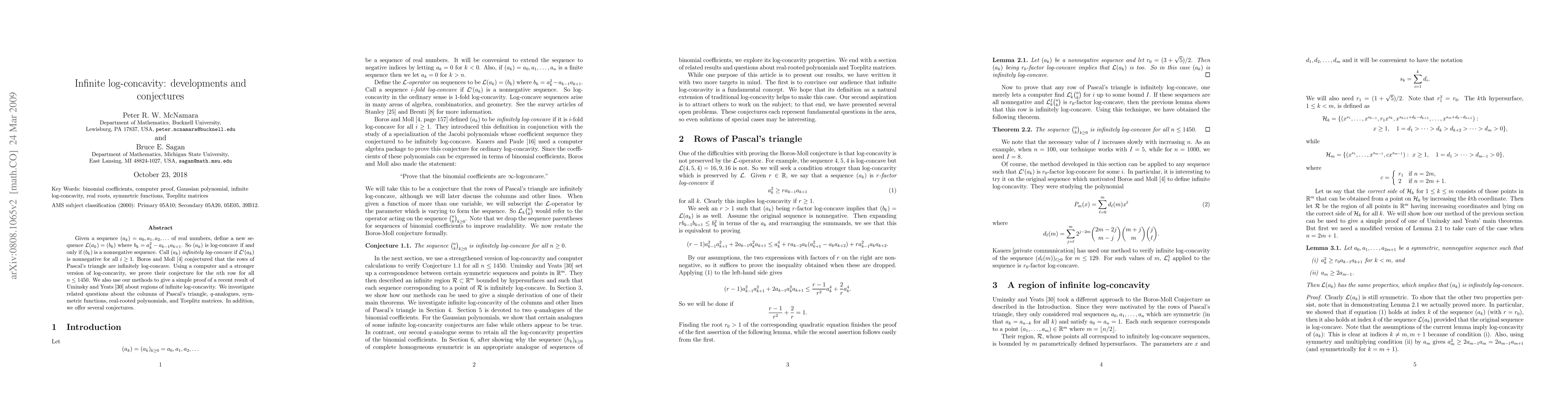 This paper explores the concept of infinite log-concavity for sequences, proving the conjecture that the rows of Pascal's triangle are infinitely log-concave up to n=1450. It also extends the methods to support a related result and proposes several new conjectures regarding sequences, polynomials, and matrices.