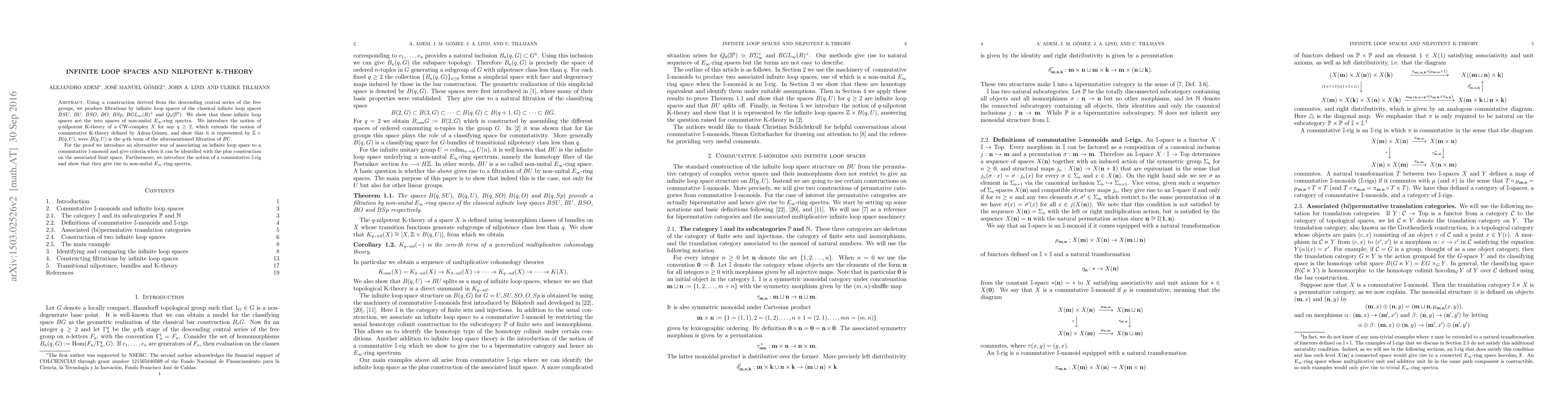 Using a construction derived from the descending central series of the free groups, we produce filtrations by infinite loop spaces of the classical infinite loop spaces $BSU$, $BU$, $BSO$, $BO$, $BSp$, $BGL_{\infty}(R)^{+}$ and $Q_0(\mathbb{S}^{0})$. We show that these infinite loop spaces are the zero spaces of non-unital $E_\infty$-ring spectra. We introduce the notion of $q$-nilpotent K-theory of a CW-complex $X$ for any $q\ge 2$, which extends the notion of commutative K-theory defined by Adem-G\'omez, and show that it is represented by $\mathbb Z\times B(q,U)$, were $B(q,U)$ is the $q$-th term of the aforementioned filtration of $BU$. For the proof we introduce an alternative way of associating an infinite loop space to a commutative $\mathbb{I}$-monoid and give criteria when it can be identified with the plus construction on the associated limit space. Furthermore, we introduce the notion of a commutative $\mathbb{I}$-rig and show that they give rise to non-unital $E_\infty$-ring spectra.