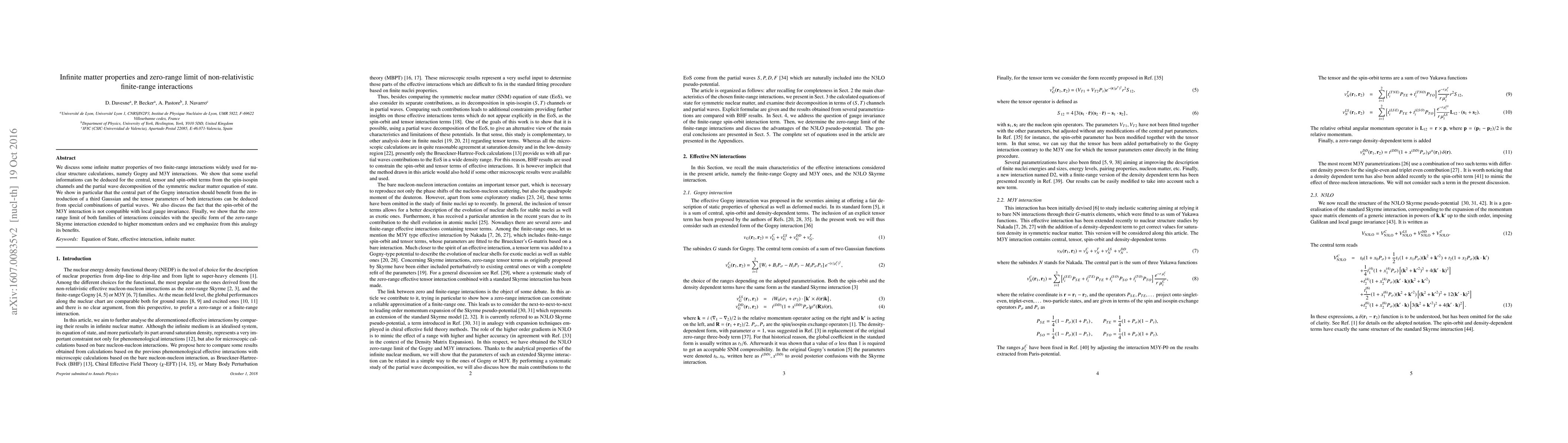 This paper investigates the infinite matter properties of the Gogny and M3Y interactions, revealing insights into the central, tensor, and spin-orbit terms through spin-isospin channels and partial wave decomposition. It concludes that the zero-range limit of these interactions aligns with the zero-range N3LO Skyrme interaction, highlighting the advantages of N3LO.