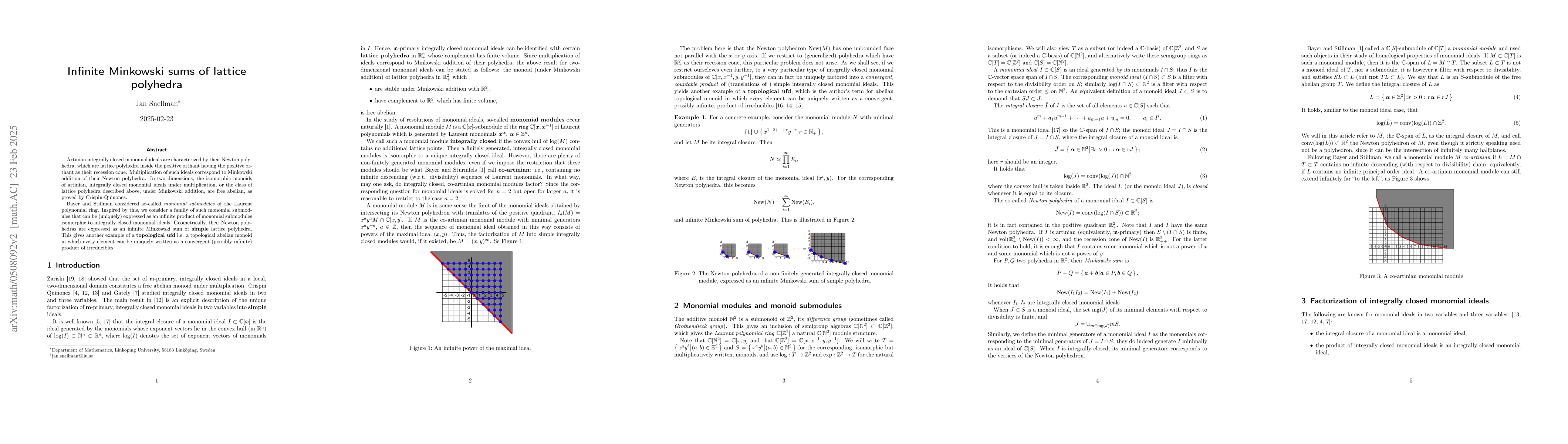 This paper explores infinite Minkowski sums of lattice polyhedra, a mathematical concept that can uniquely express monomial submodules as infinite products of irreducible elements, providing an example of a topological ufd.