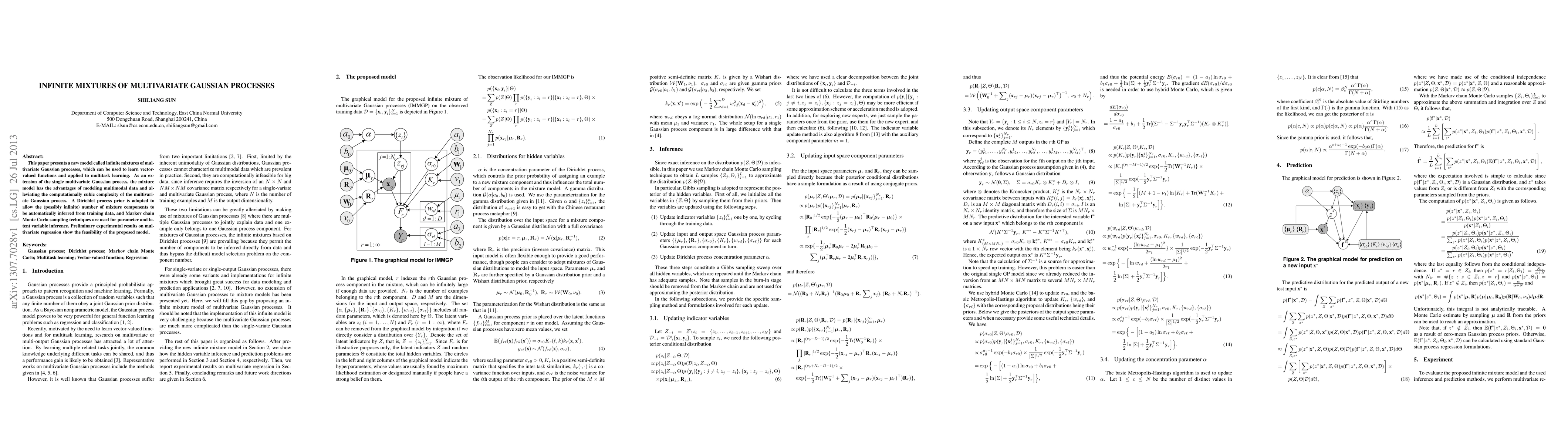 This paper introduces an infinite mixtures of multivariate Gaussian processes model for learning vector-valued functions and multitask learning, leveraging a Dirichlet process prior to infer the number of mixture components and employing MCMC for inference. Preliminary results indicate its effectiveness for multivariate regression.