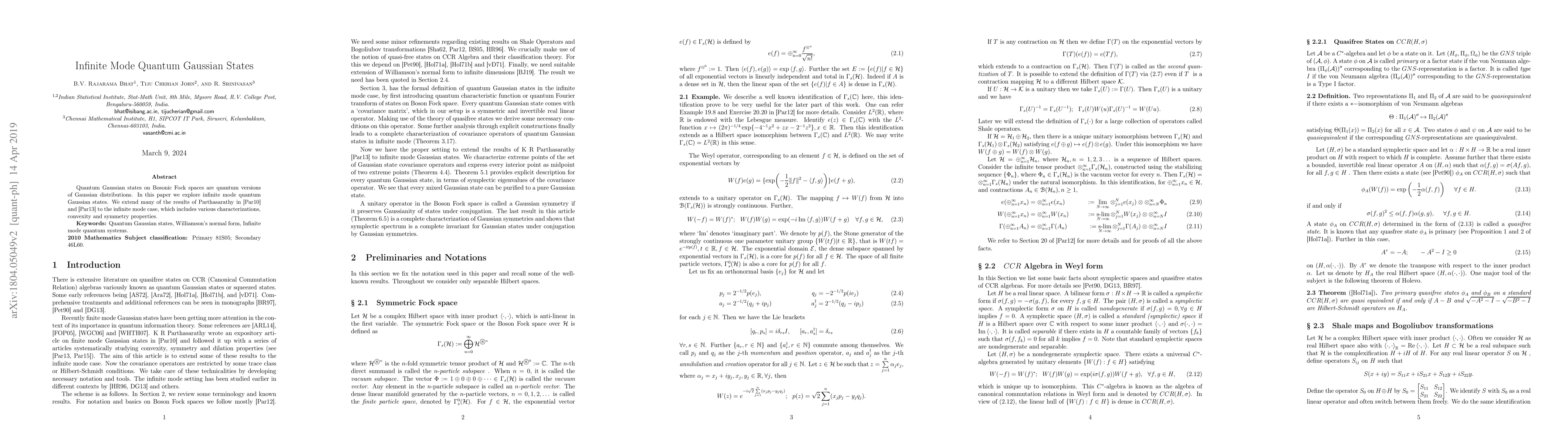 The paper presents detailed analysis and proofs regarding the properties of infinite mode quantum Gaussian states, extending known results from Parthasarathy.