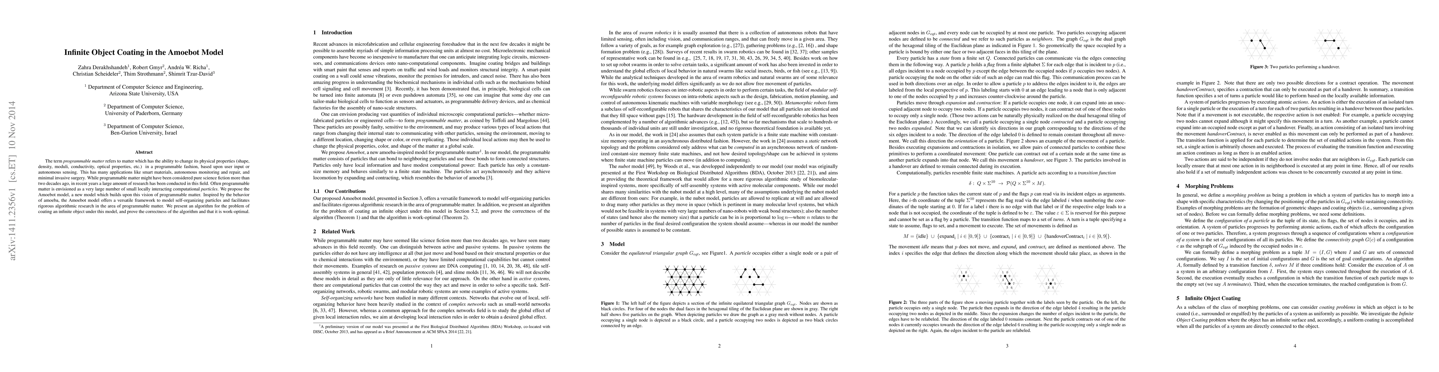Researchers propose the Amoebot model for programmable matter, which enables self-organizing particles to coat an infinite object in a work-optimal algorithm, opening up new possibilities for smart materials and minimal invasive surgery.