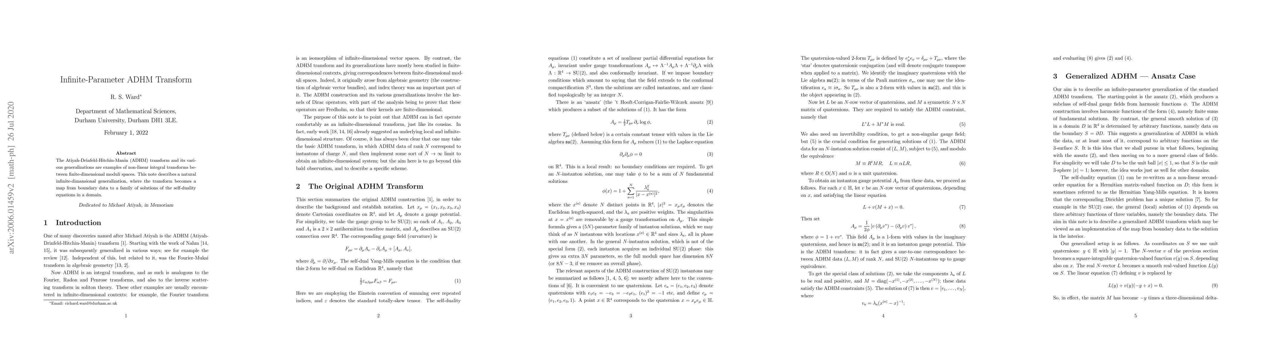 The Atiyah-Drinfeld-Hitchin-Manin (ADHM) transform and its various generalizations are examples of non-linear integral transforms between finite-dimensional moduli spaces. This note describes a natural infinite-dimansional generalization, where the transform becomes a map from boundary data to a family of solutions of the self-duality equations in a domain.