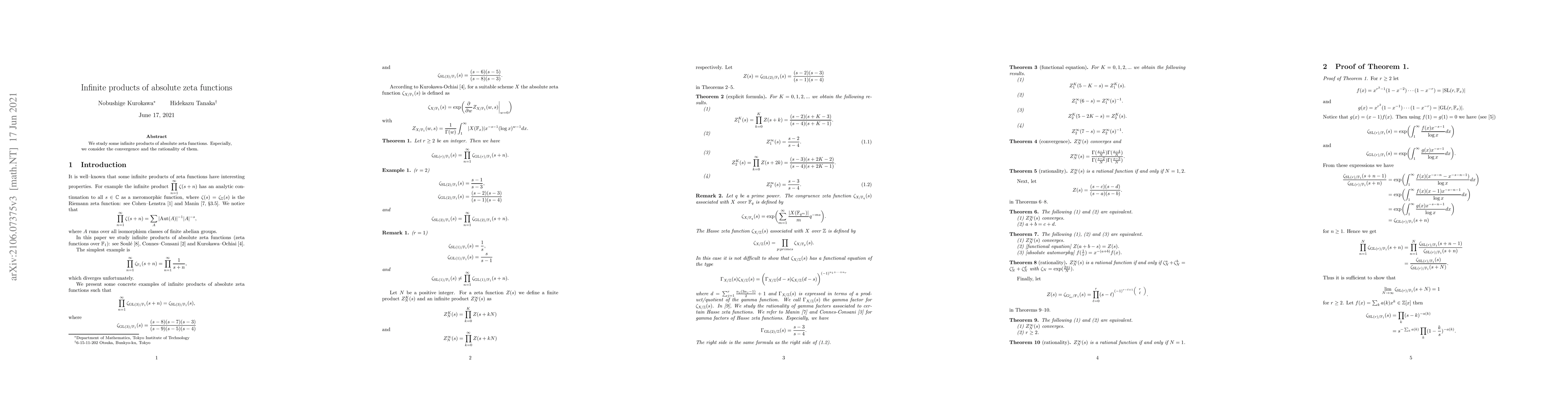 This paper investigates the convergence and rationality properties of infinite products formed from absolute zeta functions, focusing on their mathematical behavior and implications.