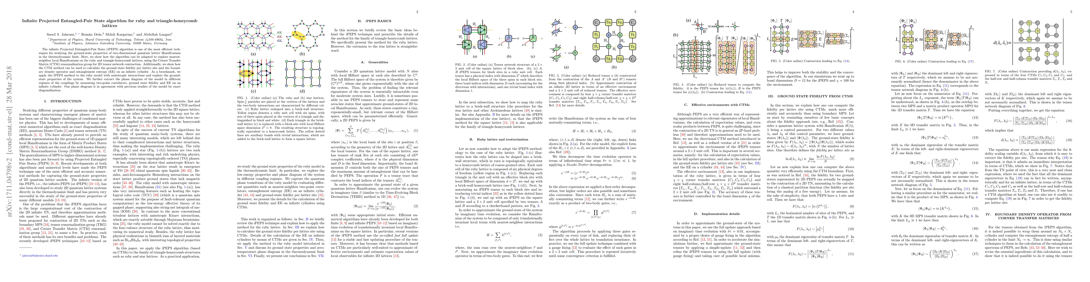 This paper adapts the infinite Projected Entangled-Pair State (iPEPS) algorithm to study the ground-state properties of quantum lattice Hamiltonians on ruby and triangle-honeycomb lattices using the Corner Transfer Matrix (CTM) renormalization group. The authors demonstrate the method's application to the ruby model, extracting its phase diagram and comparing results to previous exact diagonalization studies.