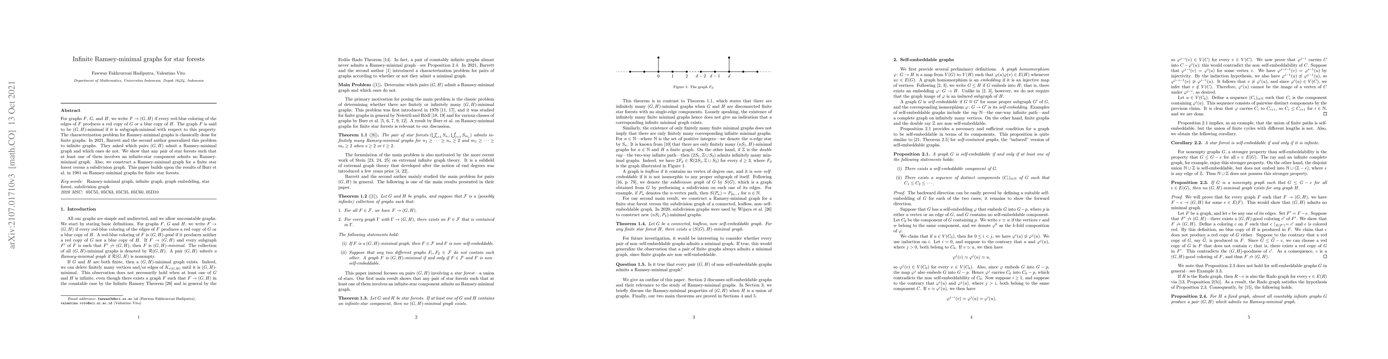 For graphs $F$, $G$, and $H$, we write $F \to (G,H)$ if every red-blue coloring of the edges of $F$ produces a red copy of $G$ or a blue copy of $H$. The graph $F$ is said to be $(G,H)$-minimal if it is subgraph-minimal with respect to this property. The characterization problem for Ramsey-minimal graphs is classically done for finite graphs. In 2021, Barrett and the second author generalized this problem to infinite graphs. They asked which pairs $(G,H)$ admit a Ramsey-minimal graph and which ones do not. We show that any pair of star forests such that at least one of them involves an infinite-star component admits no Ramsey-minimal graph. Also, we construct a Ramsey-minimal graph for a finite star forest versus a subdivision graph. This paper builds upon the results of Burr et al. in 1981 on Ramsey-minimal graphs for finite star forests.