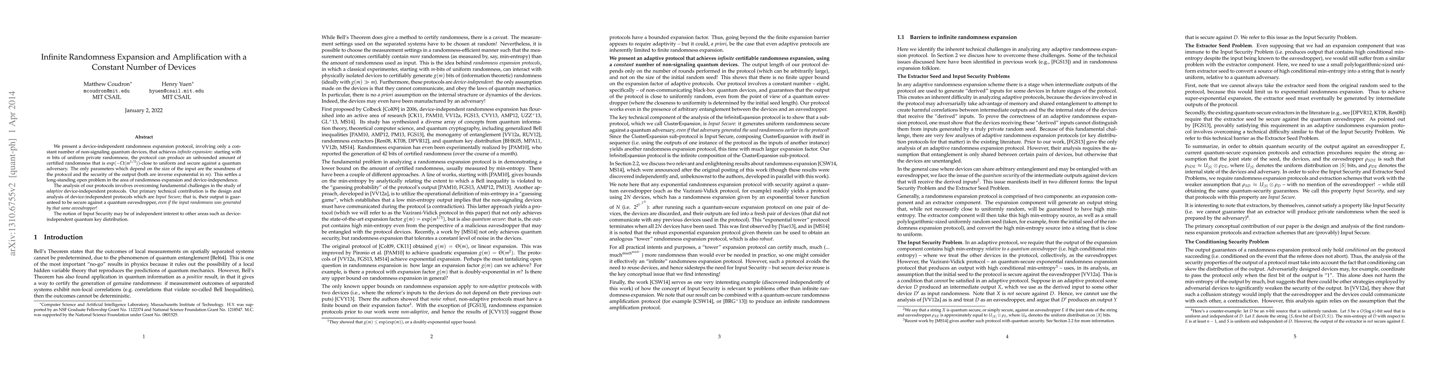 This paper introduces a device-independent protocol using a constant number of non-signaling quantum devices to achieve infinite randomness expansion, producing an unbounded amount of certified randomness secure against quantum adversaries. The protocol's security and soundness are inversely exponential in the input size, addressing a long-standing open problem in randomness expansion.