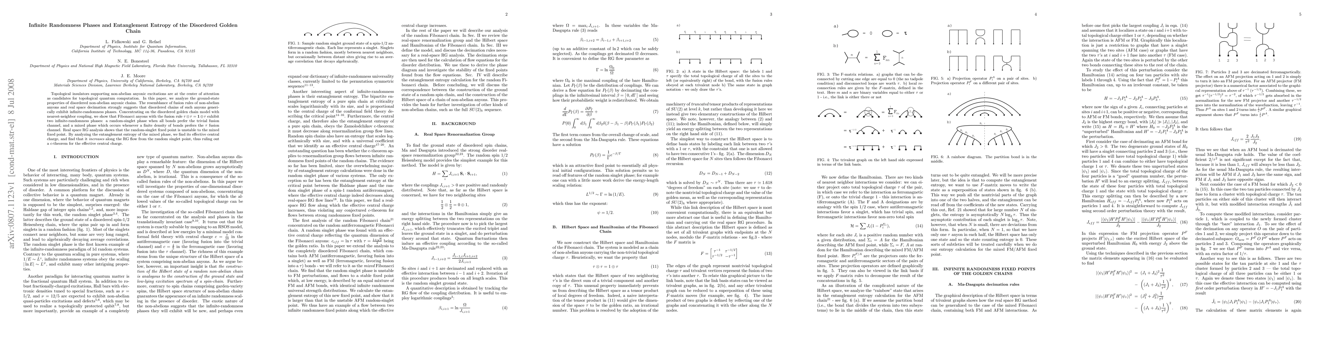 Topological insulators supporting non-abelian anyonic excitations are at the center of attention as candidates for topological quantum computation. In this paper, we analyze the ground-state properties of disordered non-abelian anyonic chains. The resemblance of fusion rules of non-abelian anyons and real space decimation strongly suggests that disordered chains of such anyons generically exhibit infinite-randomness phases. Concentrating on the disordered golden chain model with nearest-neighbor coupling, we show that Fibonacci anyons with the fusion rule $\tau\otimes\tau={\bf 1}\oplus \tau$ exhibit two infinite-randomness phases: a random-singlet phase when all bonds prefer the trivial fusion channel, and a mixed phase which occurs whenever a finite density of bonds prefers the $\tau$ fusion channel. Real space RG analysis shows that the random-singlet fixed point is unstable to the mixed fixed point. By analyzing the entanglement entropy of the mixed phase, we find its effective central charge, and find that it increases along the RG flow from the random singlet point, thus ruling out a c-theorem for the effective central charge.