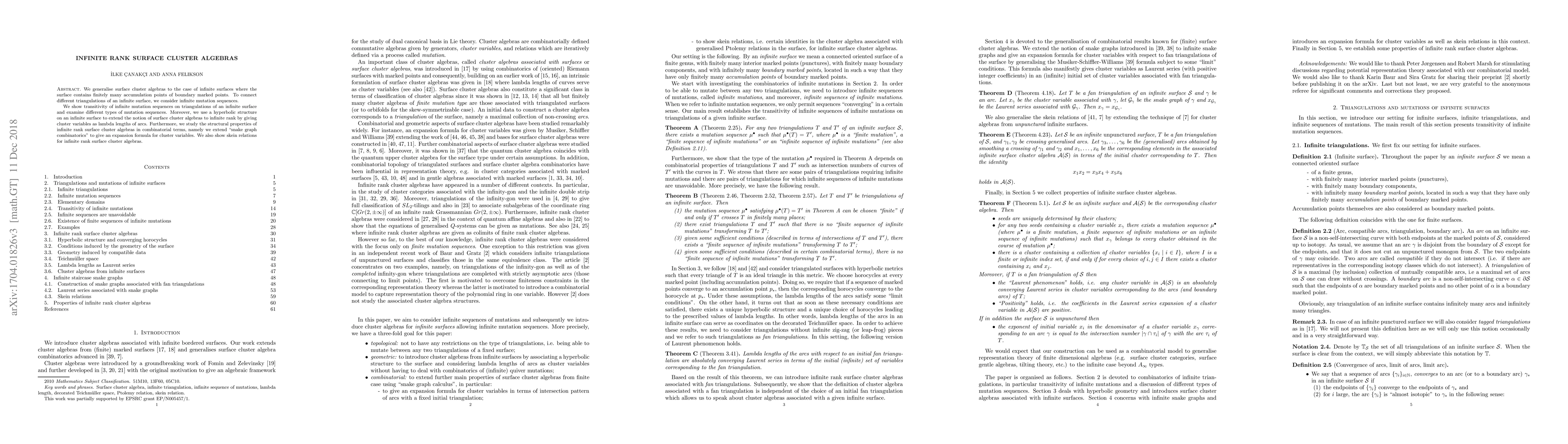 This paper generalizes surface cluster algebras to infinite surfaces with finite accumulation points and studies infinite mutation sequences to connect different triangulations. It introduces a hyperbolic structure to extend the notion of cluster variables as lambda lengths and explores structural properties using snake graph combinatorics and skein relations.