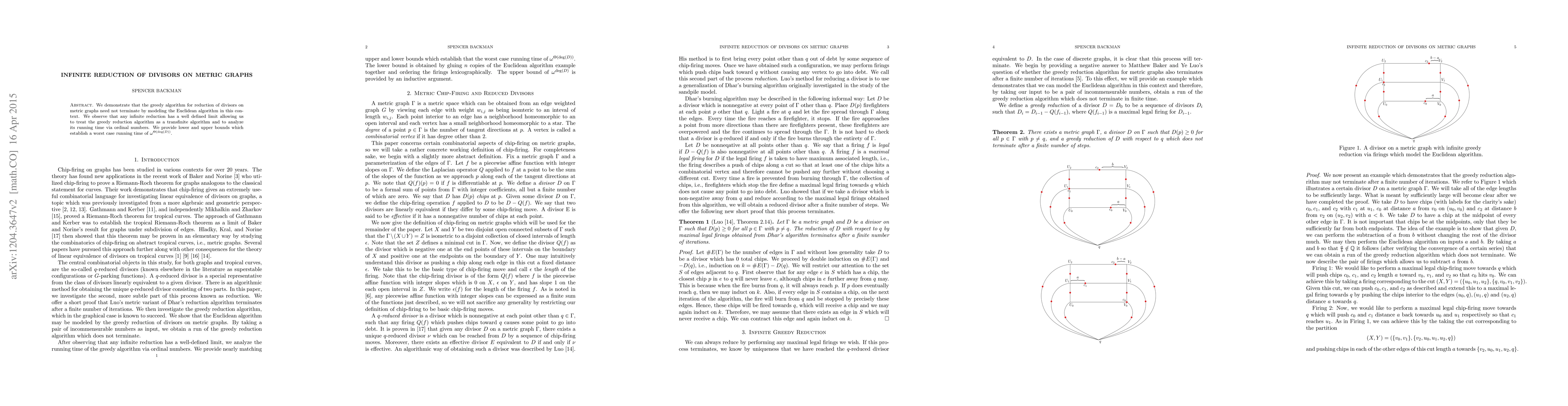 This paper shows that the greedy algorithm for reducing divisors on metric graphs may not terminate, analogous to the Euclidean algorithm. It treats the algorithm as a transfinite process, providing bounds that establish a worst-case running time of $\omega^{\Theta({\rm deg}(D))}$.