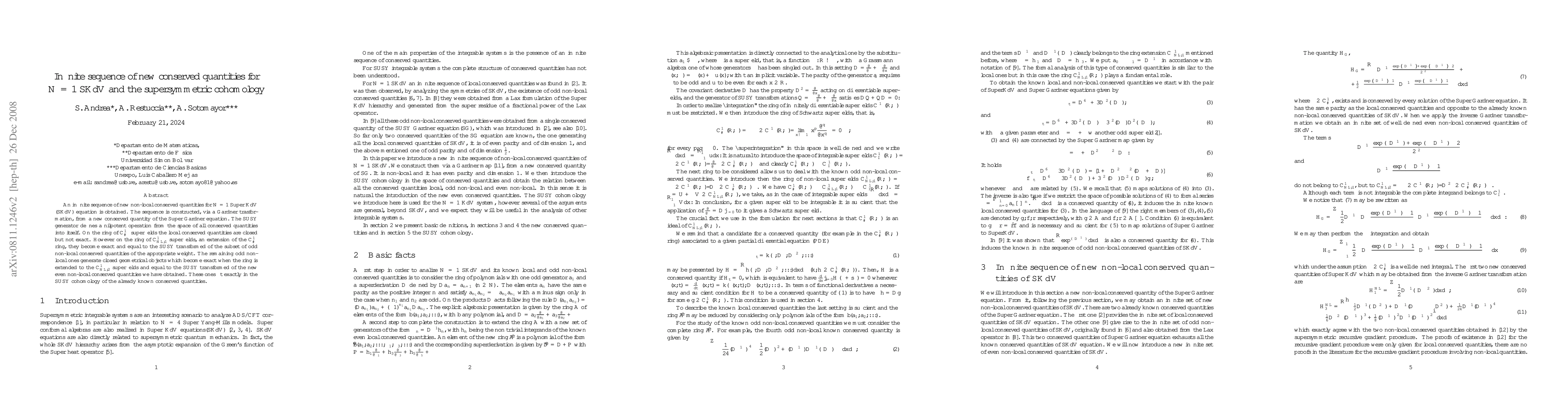 Researchers discovered an infinite sequence of new conserved quantities for the N=1 SKdV equation, which become exact when extended to a specific ring of superfields, and fit exactly into known supersymmetric cohomology.