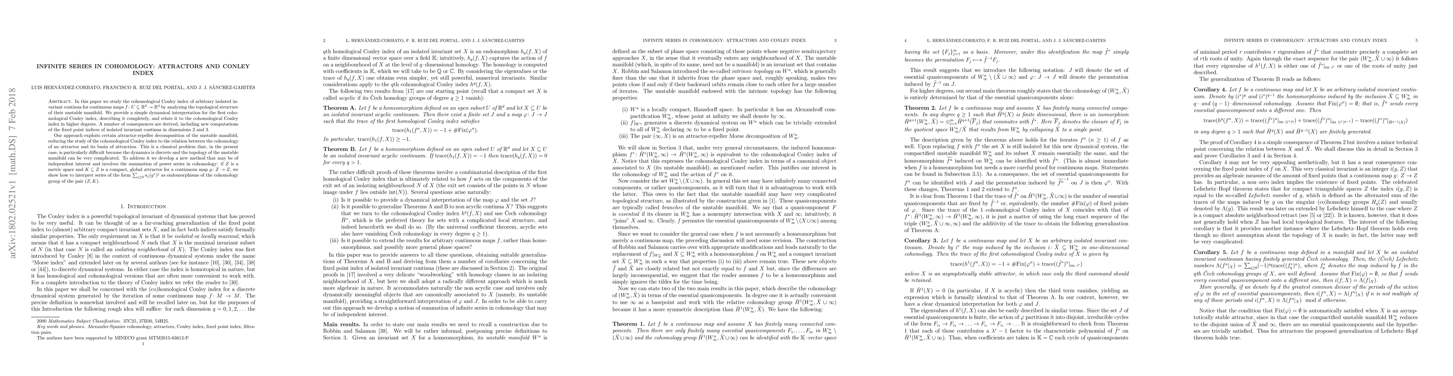 This paper explores the cohomological Conley index for isolated invariant continua in continuous maps using the unstable manifold's topological structure, introducing a new method to sum power series in cohomology to interpret dynamical systems. The method relates the cohomology of attractors to their basins of attraction, providing new insights into fixed point indices in dimensions 2 and 3.