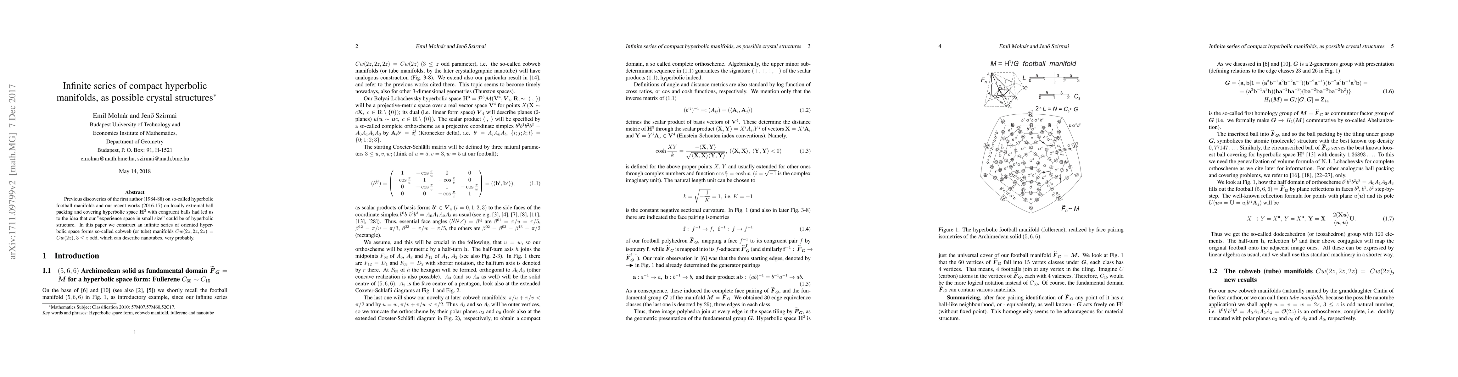 Previous discoveries of the first author (1984-88) on so-called hyperbolic football manifolds and our recent works (2016-17) on locally extremal ball packing and covering hyperbolic space $\HYP$ with congruent balls had led us to the idea that our "experience space in small size" could be of hyperbolic structure. In this paper we construct an infinite series of oriented hyperbolic space forms so-called cobweb (or tube) manifolds $Cw(2z, 2z, 2z)=Cw(2z)$, $3\le z$ odd, which can describe nanotubes, very probably.