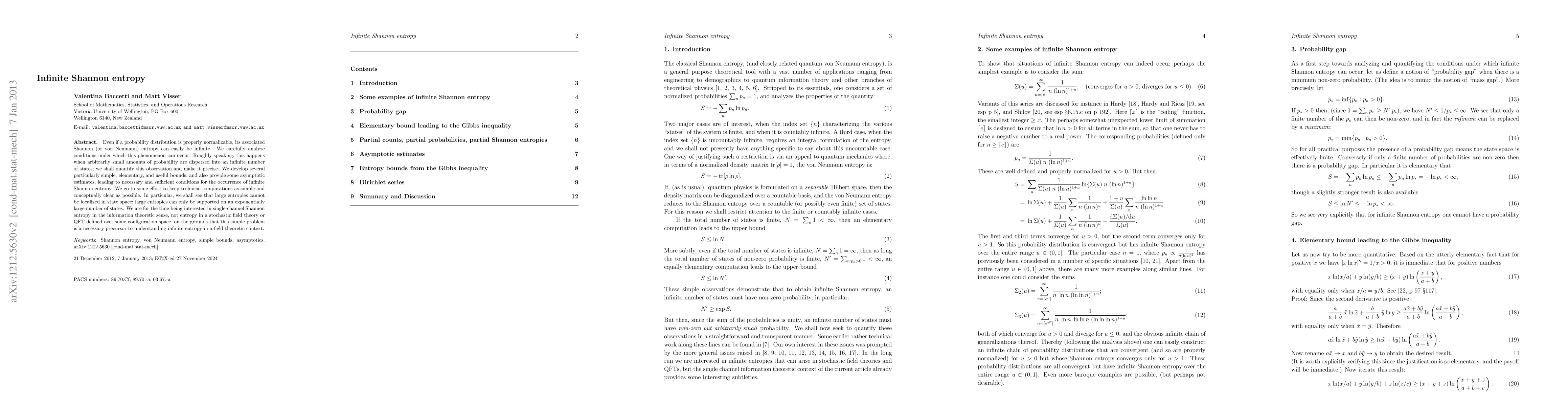 This paper investigates the conditions under which Shannon entropy becomes infinite for a properly normalizable probability distribution, showing that it occurs when small probabilities are dispersed across an infinite number of states. The authors provide simple bounds and estimates to precisely quantify this phenomenon and demonstrate that large entropies require an exponentially large number of states.