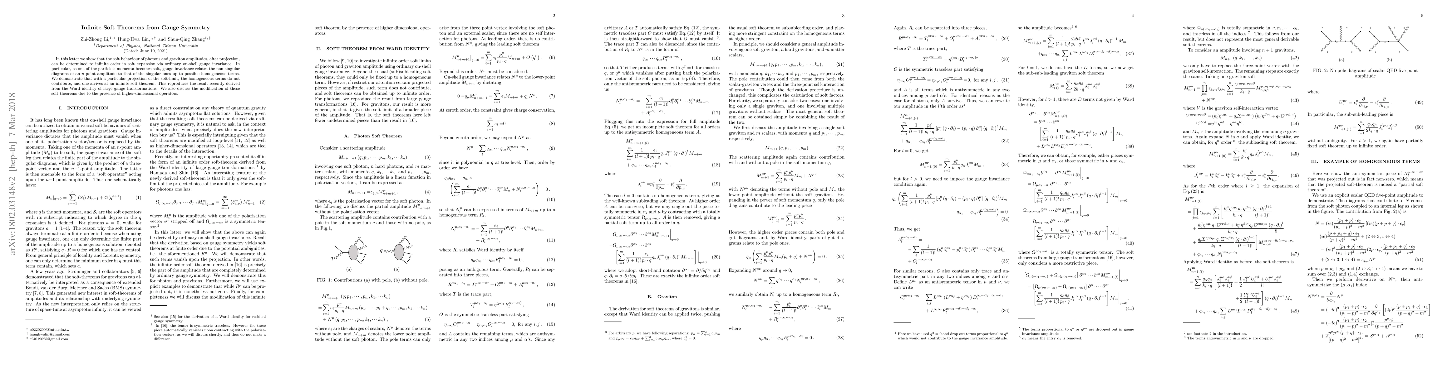 In this letter we show that the soft behaviour of photons and graviton amplitudes, after projection, can be determined to infinite order in soft expansion via ordinary on-shell gauge invariance. In particular, as one of the particle's momenta becomes soft, gauge invariance relates the non-singular diagrams of an n-point amplitude to that of the singular ones up to possible homogeneous terms. We demonstrate that with a particular projection of the soft-limit, the homogeneous terms do not contribute, and one arrives at an infinite soft theorem. This reproduces the result recently derived from the Ward identity of large gauge transformations. We also discuss the modification of these soft theorems due to the presence of higher-dimensional operators.