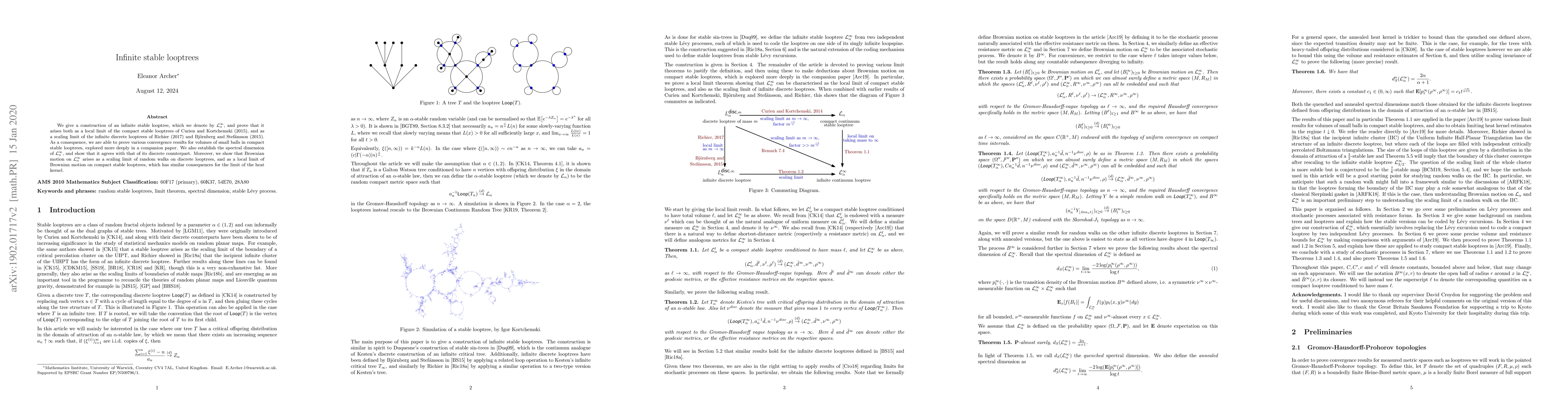 This paper constructs an infinite stable looptree $\mathcal{L}_{\alpha}^{\infty}$ and proves its emergence as a limit of compact and discrete looptrees. It also establishes convergence results for volumes and the spectral dimension, showing Brownian motion on $\mathcal{L}_{\alpha}^{\infty}$ as a scaling limit of random walks.
