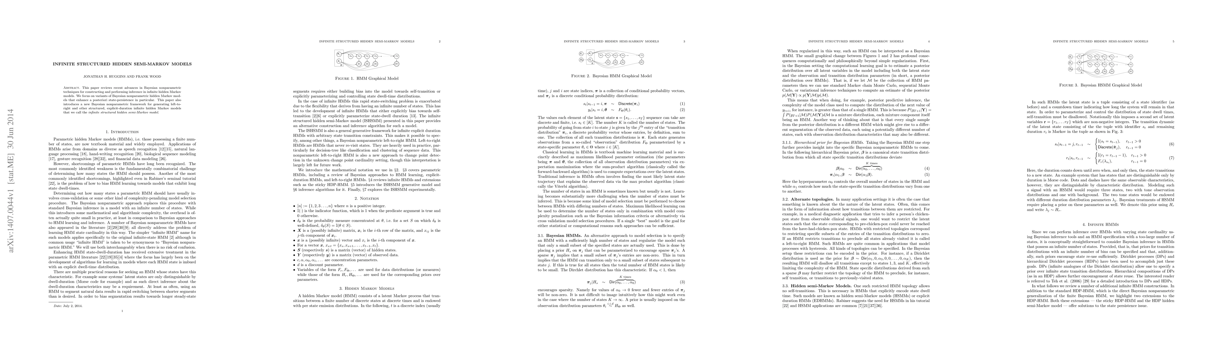 This paper reviews advancements in Bayesian nonparametric methods for infinite hidden Markov models, emphasizing state-persistence, and introduces a new framework called the infinite structured hidden semi-Markov model for generating structured, explicit-duration hidden states.
