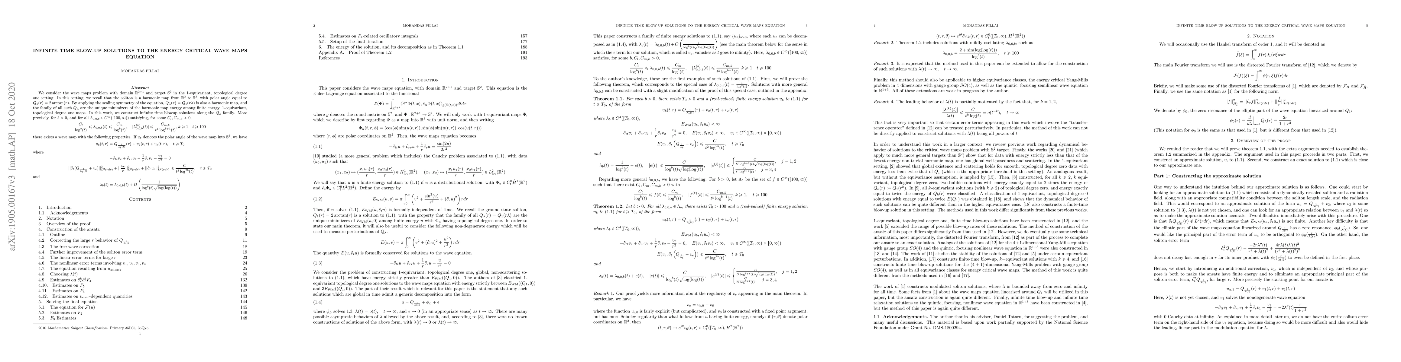 Researchers construct infinite time blowup solutions to the energy critical wave maps equation, showing that under certain conditions, wave maps can exhibit explosive behavior in the distant future.
