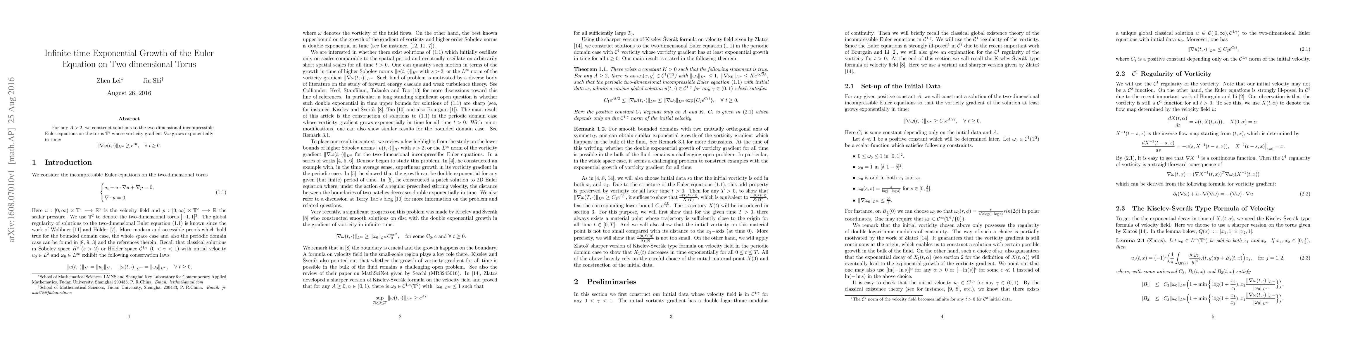 This paper constructs solutions to the two-dimensional incompressible Euler equations on the torus that exhibit infinite-time exponential growth in the vorticity gradient, with $\nabla\omega$ growing as $e^{At}$ for any $A > 2$. This demonstrates significant complexity and instability in the dynamics of the Euler equations.