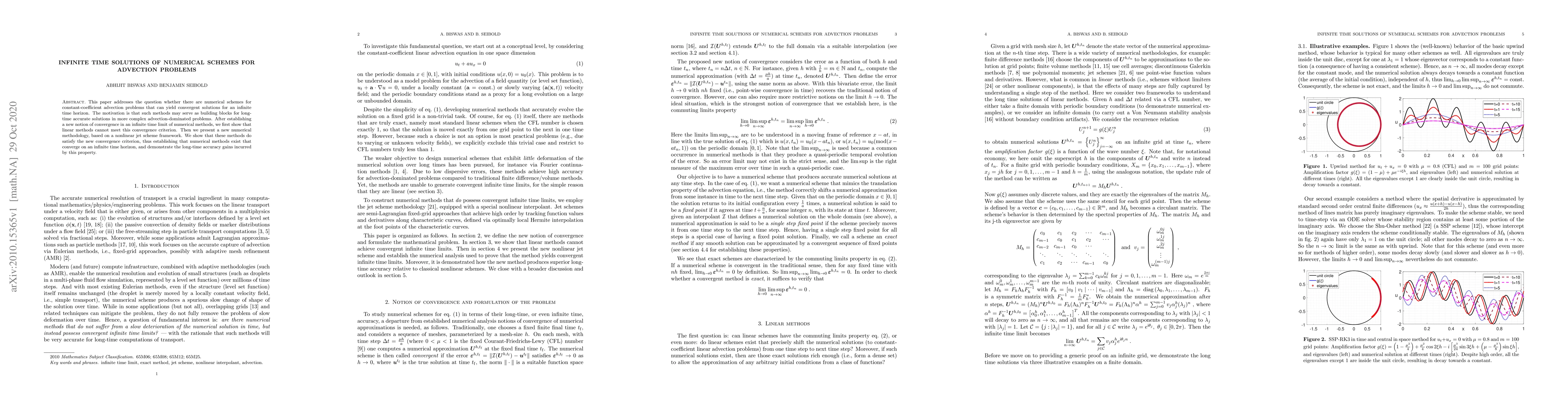 This paper introduces a new convergence criterion for numerical schemes solving constant-coefficient advection problems over an infinite time horizon, demonstrating that linear methods fail to meet this criterion. A novel nonlinear jet scheme methodology is proposed that satisfies the new convergence criterion, proving the existence of schemes that provide accurate solutions over long periods.
