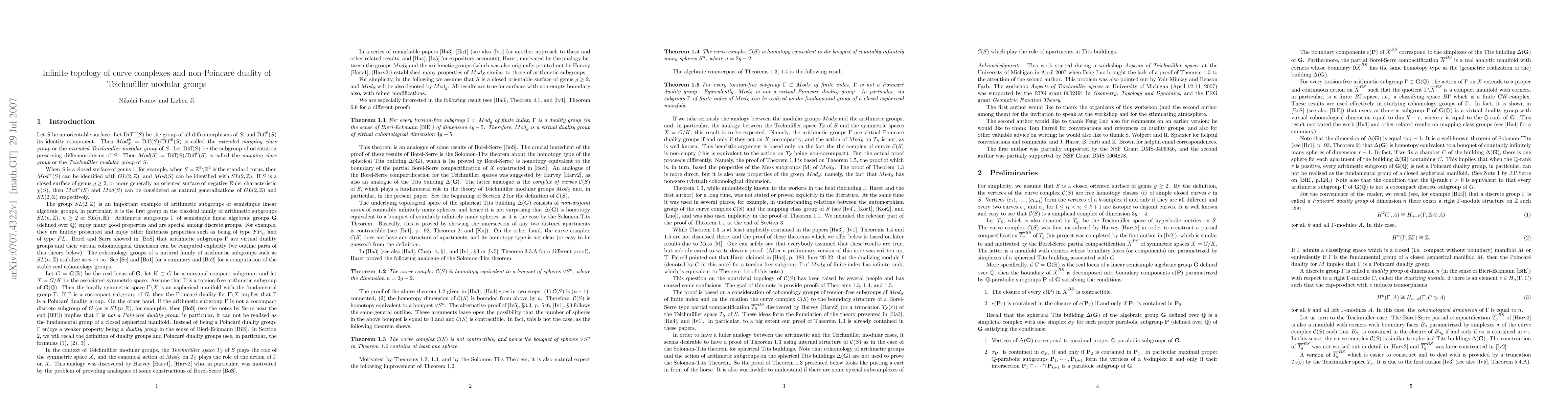 Summary: The paper demonstrates that Teichmueller modular groups lack Poincare duality and proves that the complexes of curves on surfaces do not have finite homotopy type, instead exhibiting infinite topology.