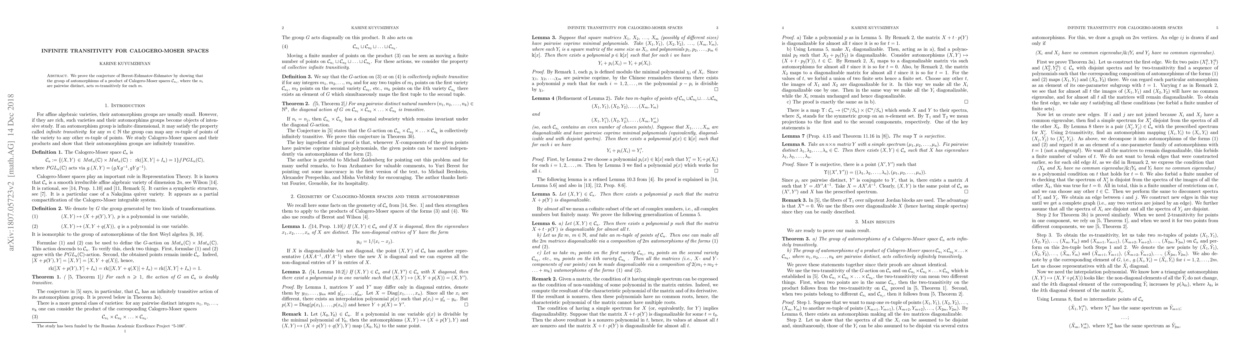 This paper proves the conjecture that the automorphism group of a product of distinct Calogero-Moser spaces acts infinitely transitively for any level $m$. This establishes infinite transitivity for these important mathematical structures.