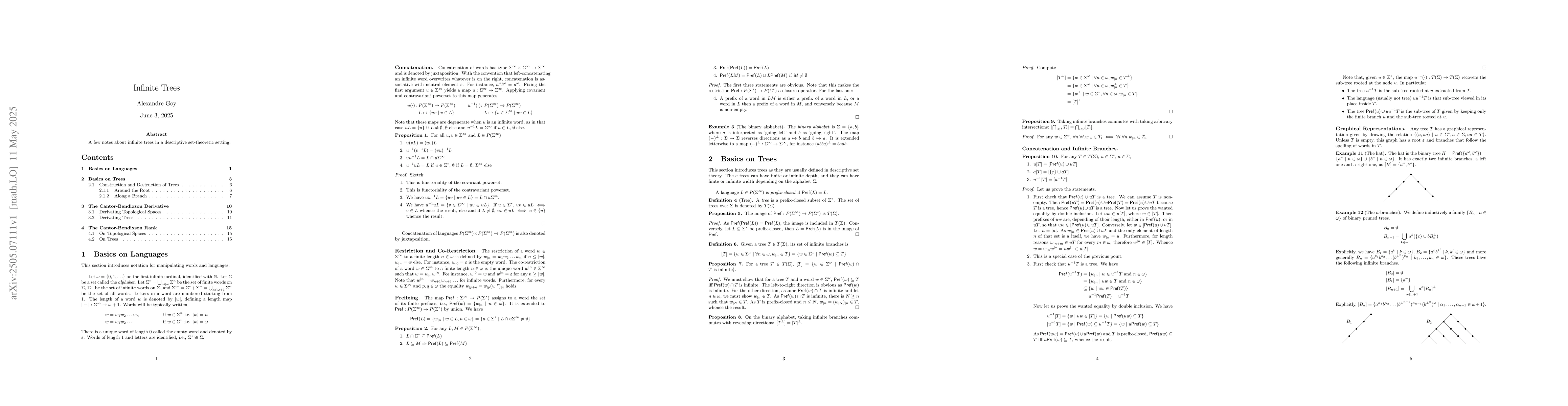 The paper explores infinite trees within the framework of descriptive set theory, providing notes and insights in this setting.