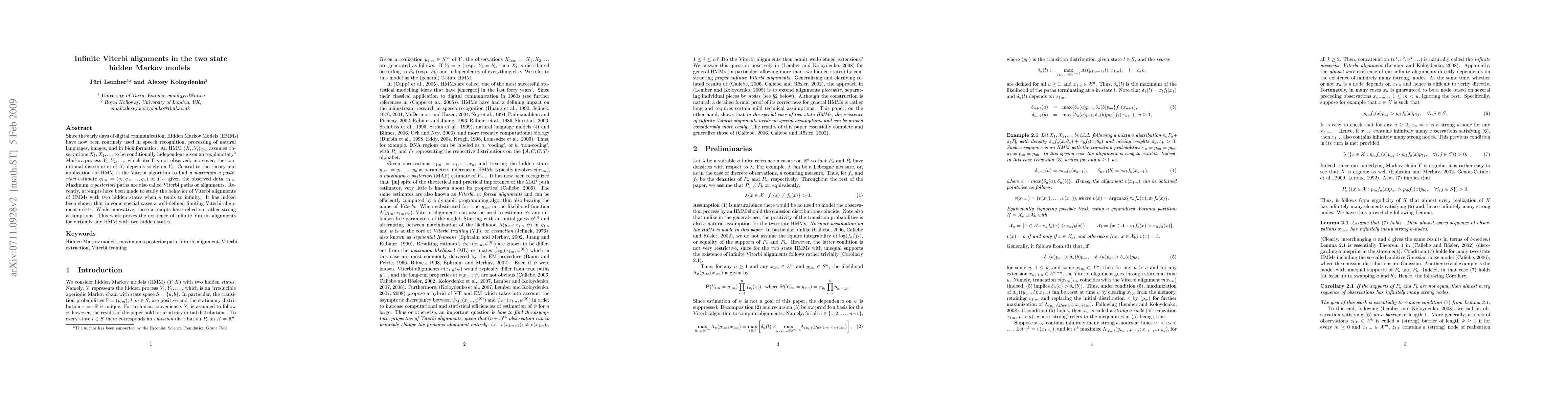 This paper demonstrates that infinite Viterbi alignments exist for any two-state hidden Markov model (HMM) as the sequence length tends to infinity, challenging previous studies that required strong assumptions. The findings expand the understanding of HMM behavior in applications like speech recognition and bioinformatics.