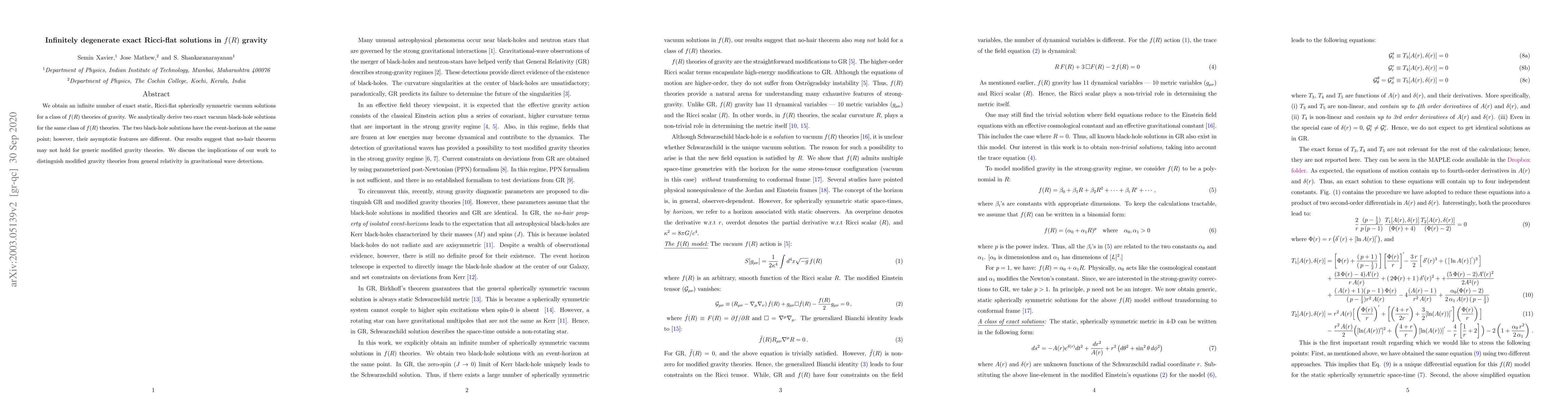 We obtain an infinite number of exact static, Ricci-flat spherically symmetric vacuum solutions for a class of f(R) theories of gravity. We analytically derive two exact vacuum black-hole solutions for the same class of f(R) theories. The two black-hole solutions have the event-horizon at the same point; however, their asymptotic features are different. Our results suggest that no-hair theorem may not hold for generic modified gravity theories. We discuss the implications of our work to distinguish modified gravity theories from general relativity in gravitational wave detections.