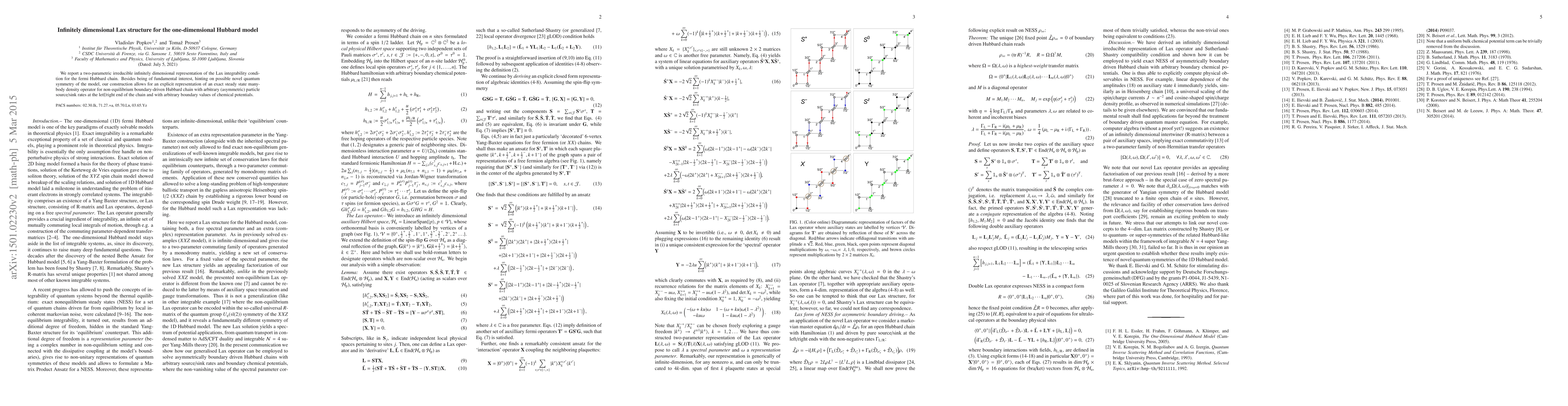Researchers developed a mathematical framework for the one-dimensional Hubbard model, creating an exact solution for its many-body density operator that can handle dynamic particle sources and sinks at both ends of the chain.