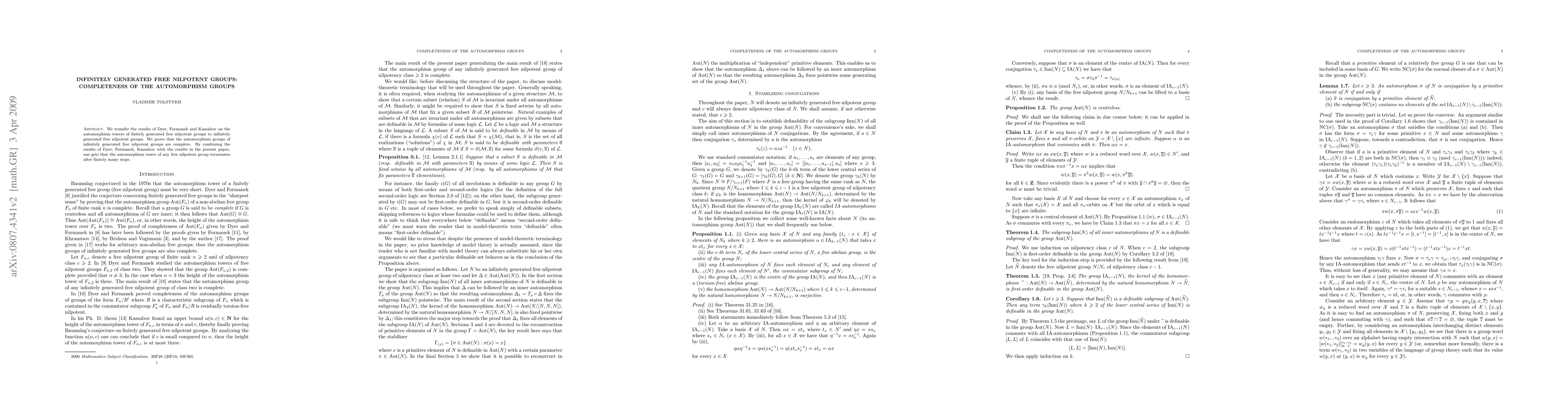 This paper proves that the automorphism group of any infinitely generated free nilpotent group of nilpotency class at least two is complete, confirming that the automorphism tower terminates after a finite number of steps, and thereby supporting Baumslag's conjecture.
