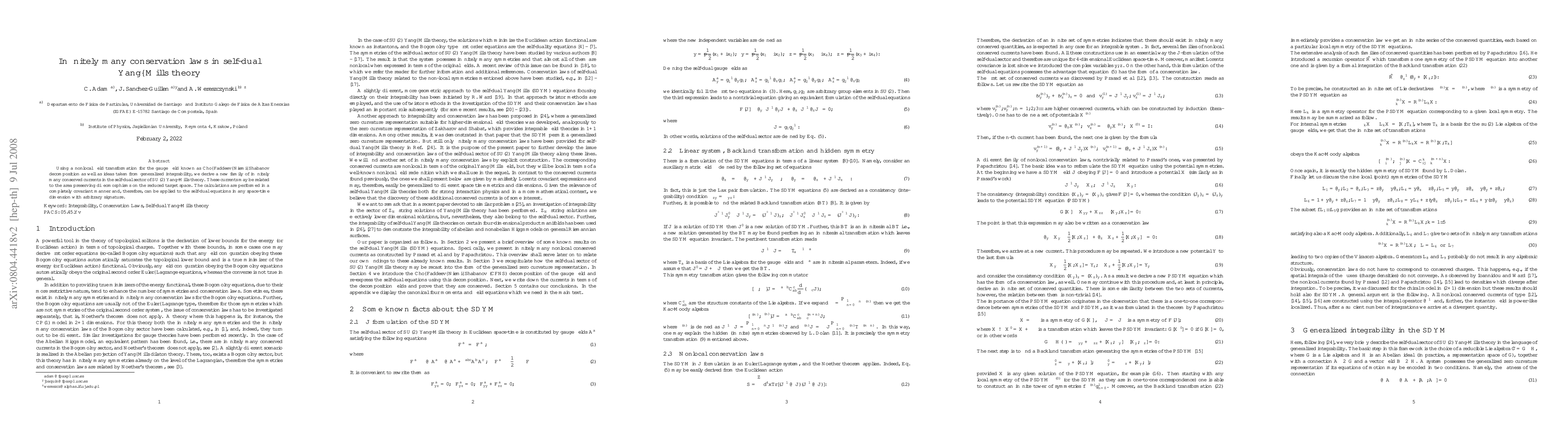 Using a nonlocal field transformation for the gauge field known as Cho--Faddeev--Niemi--Shabanov decomposition as well as ideas taken from generalized integrability, we derive a new family of infinitely many conserved currents in the self-dual sector of SU(2) Yang-Mills theory. These currents may be related to the area preserving diffeomorphisms on the reduced target space. The calculations are performed in a completely covariant manner and, therefore, can be applied to the self-dual equations in any space-time dimension with arbitrary signature.