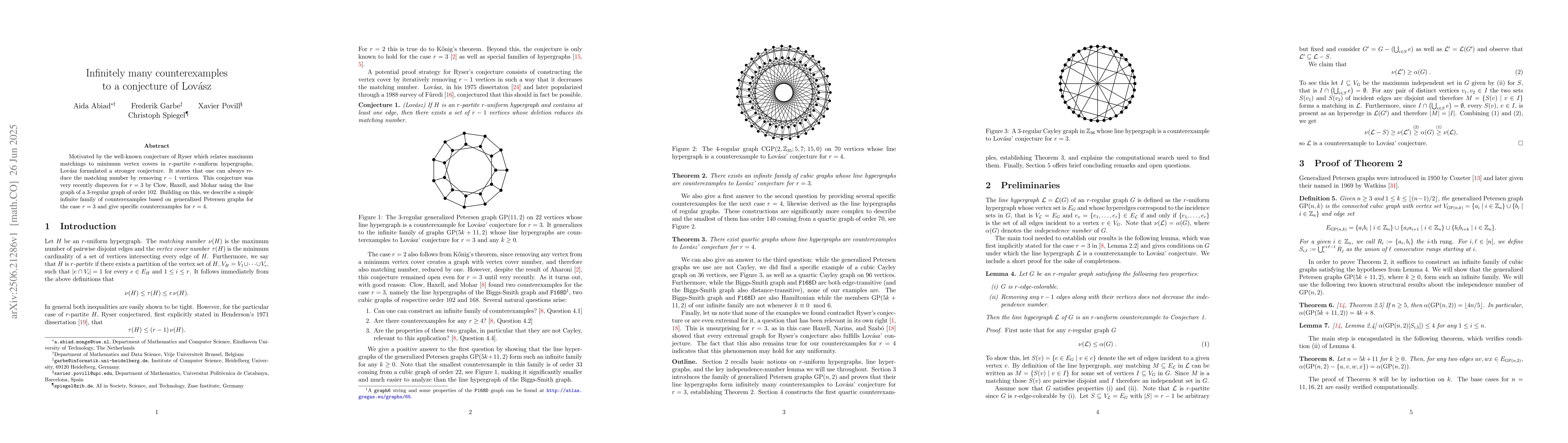 The paper introduces a new family of counterexamples based on generalized Petersen graphs and provides a lemma linking graph properties to hypergraph counterexamples, advancing the understanding of Lovász's conjecture.