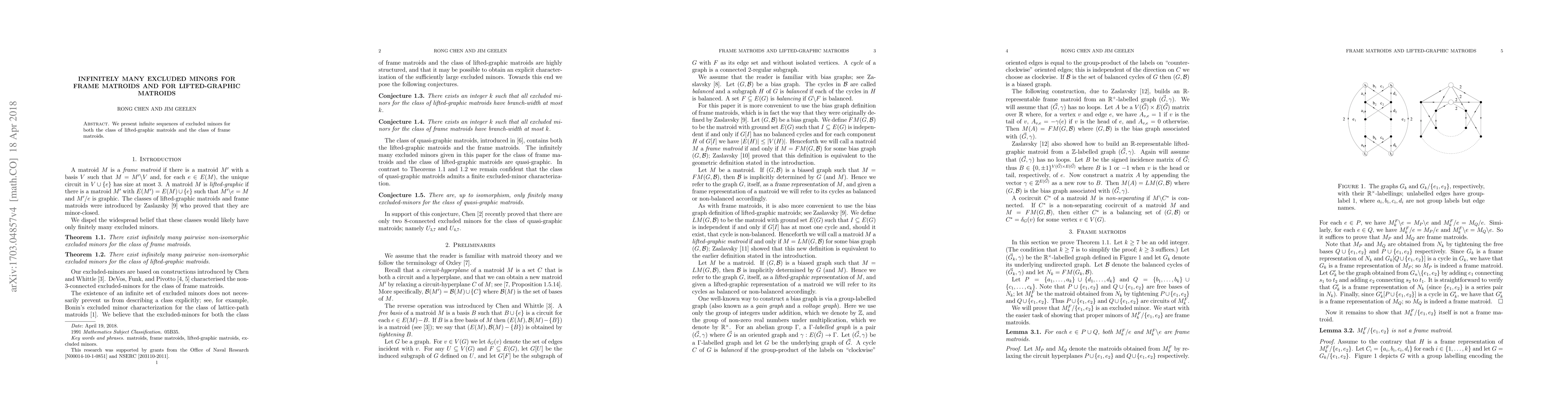 Two-Line Summary: This paper establishes infinite sequences of excluded minors for the classes of lifted-graphic matroids and frame matroids, providing deeper insight into their structural properties and classification.