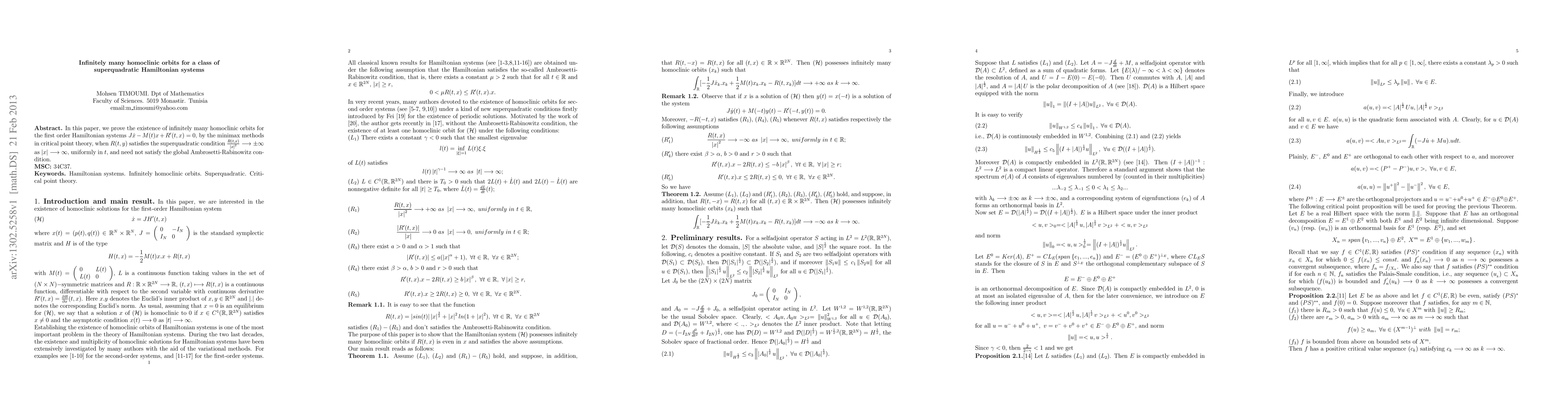 This paper demonstrates the existence of infinitely many homoclinic orbits for certain first-order Hamiltonian systems using minimax methods in critical point theory, under the superquadratic condition on the potential function without requiring the global Ambrosetti-Rabinowitz condition.