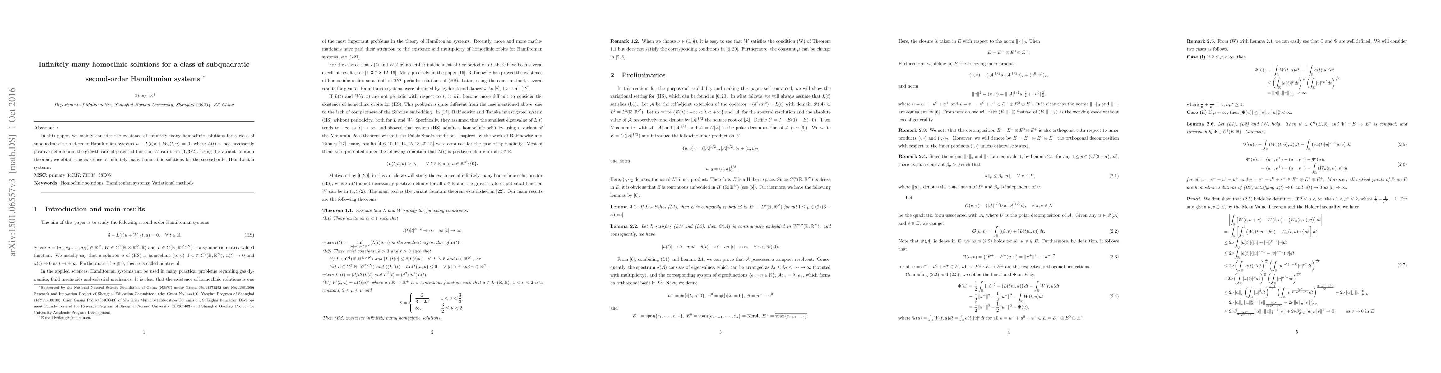This paper explores the existence of infinitely many homoclinic solutions for subquadratic second-order Hamiltonian systems, employing the variant fountain theorem to address systems where the potential function's growth rate is between 1 and 3/2. The study reveals the presence of such solutions despite the non-positive definiteness of $L(t)$.