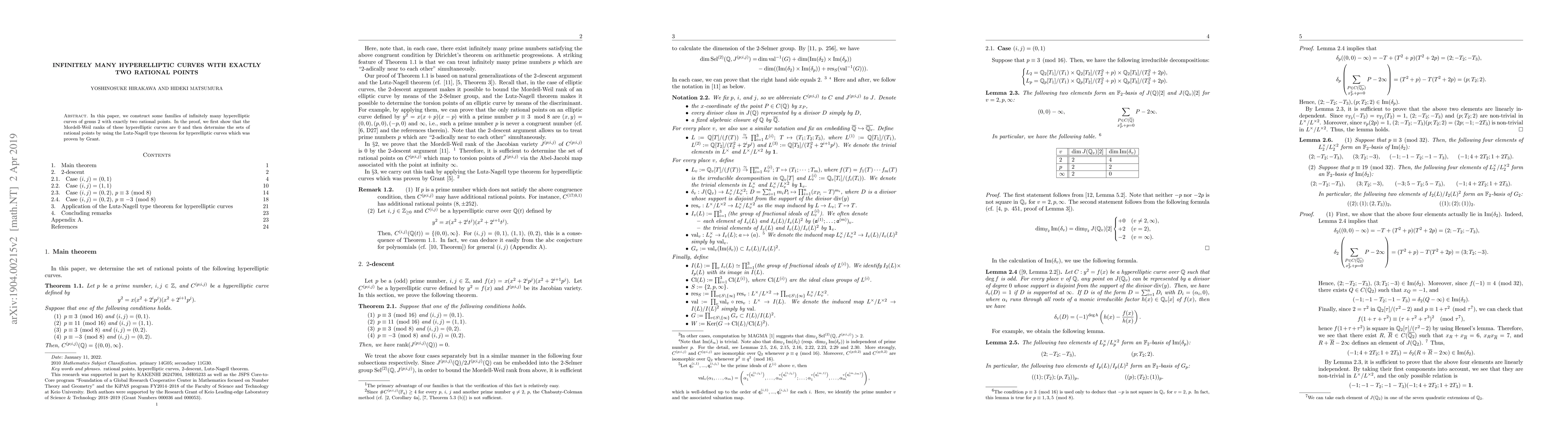 This paper constructs families of infinitely many genus 2 hyperelliptic curves with exactly two rational points, proving their Mordell-Weil ranks are $0$ and using Grant’s Lutz-Nagell theorem to determine these rational points.