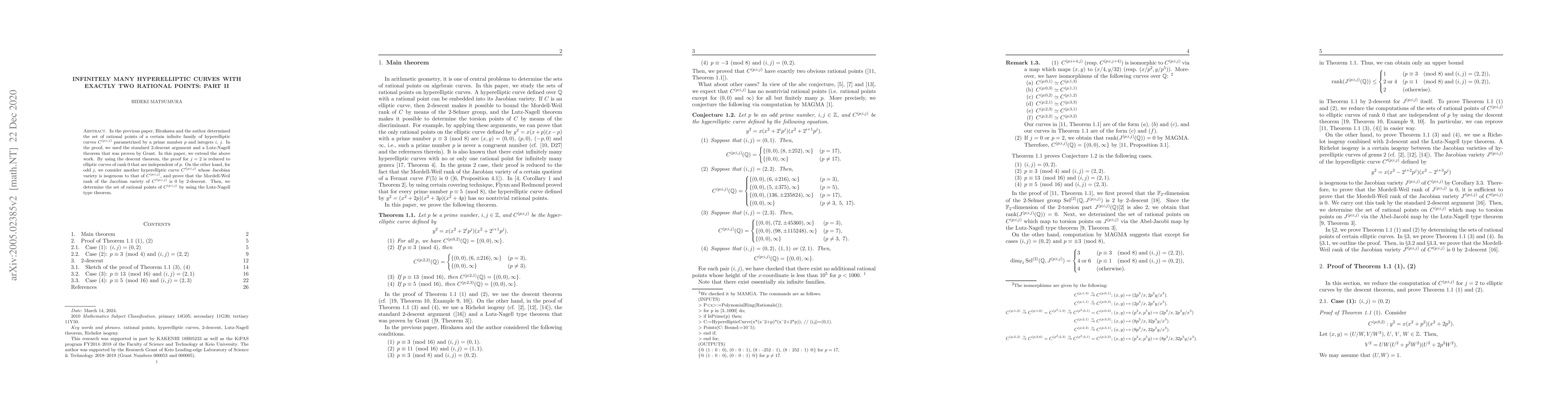 Summary: This paper extends the analysis of rational points on an infinite family of hyperelliptic curves $C^{(p;i,j)}$, utilizing descent theorems and Mordell-Weil rank considerations to determine rational points, particularly focusing on cases when $j=2$ and odd $j$, leveraging results from elliptic curves and isogeny arguments.