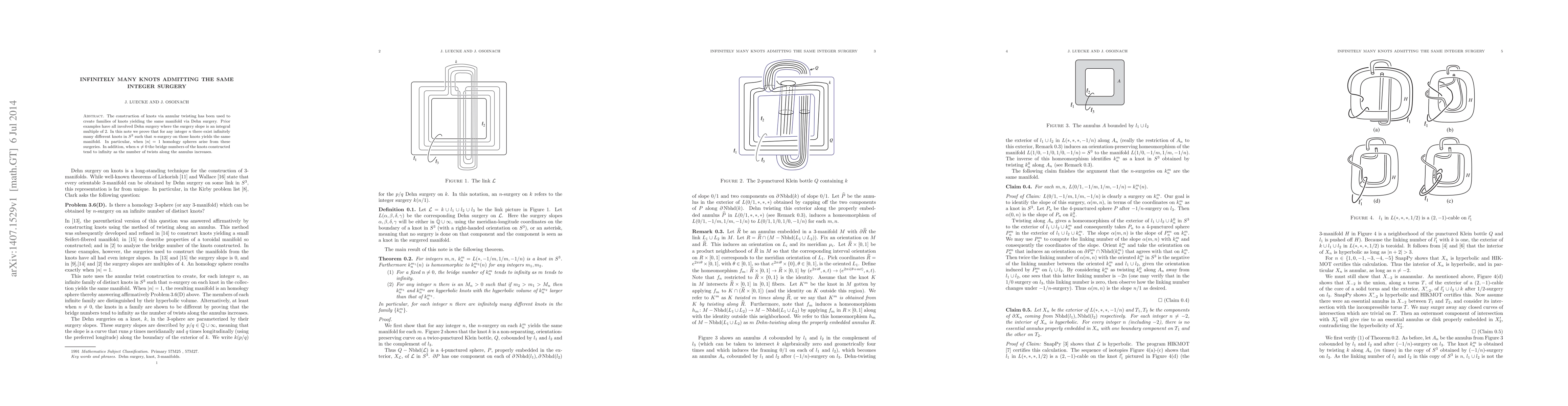 This paper demonstrates the existence of infinitely many distinct knots in $S^3$ that yield the same manifold through $n$-surgery, for any integer $n$. Notably, when $|n|=1$, the resulting manifolds are homology spheres, and the bridge numbers of these knots grow indefinitely with increasing twists.