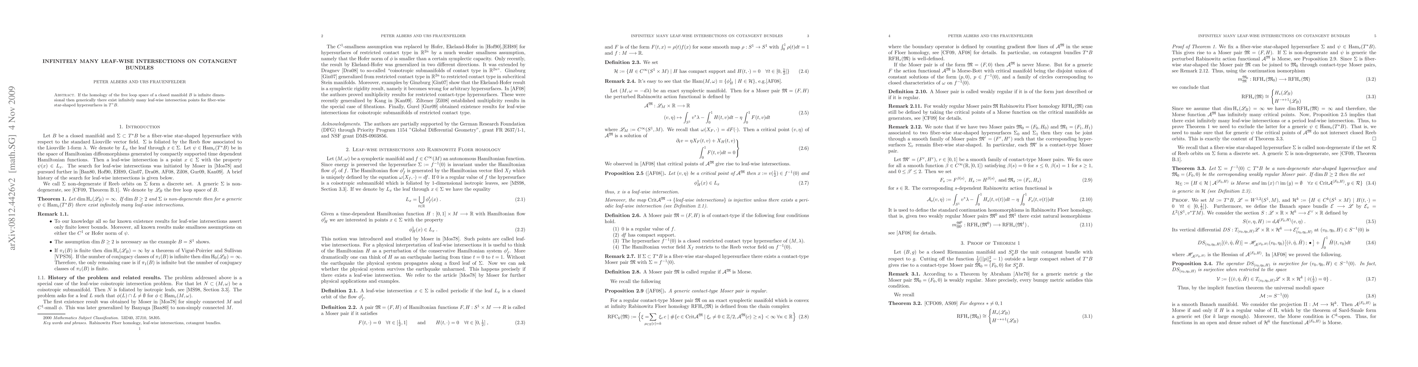 This paper demonstrates that for closed manifolds B with infinite-dimensional homology in their free loop space, there are typically infinitely many leaf-wise intersection points among fiber-wise star-shaped hypersurfaces in the cotangent bundle T*B. This result highlights a significant geometric and topological feature of the cotangent bundles.