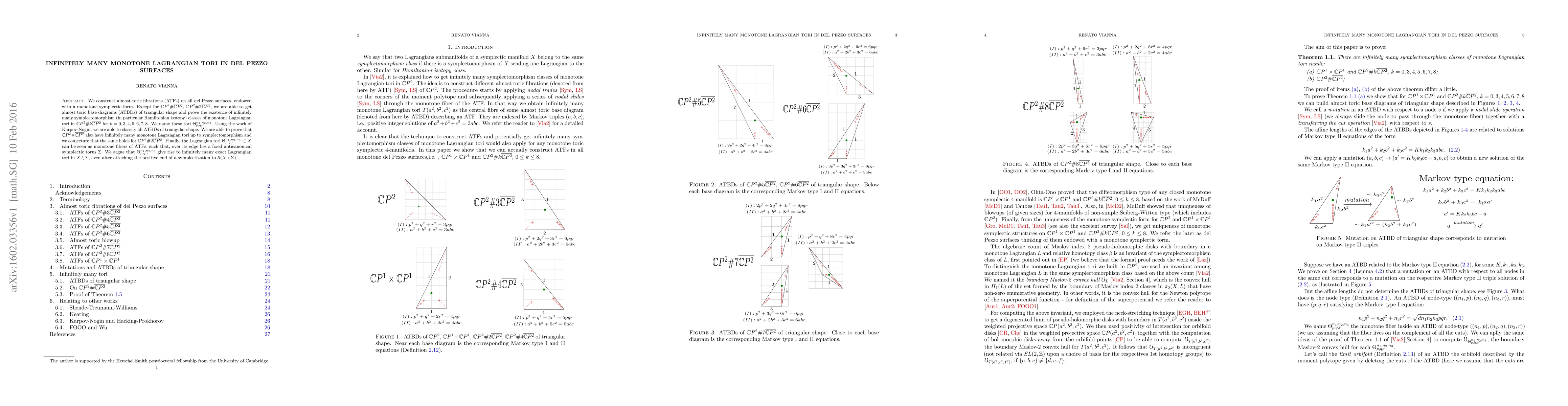 This paper constructs almost toric fibrations on del Pezzo surfaces, proving the existence of infinitely many monotone Lagrangian tori in certain cases, and conjectures the same for exceptional surfaces. The tori are named $\Theta^{n_1,n_2,n_3}_{p,q,r}$ and linked to the fibrations and anticanonical tori.
