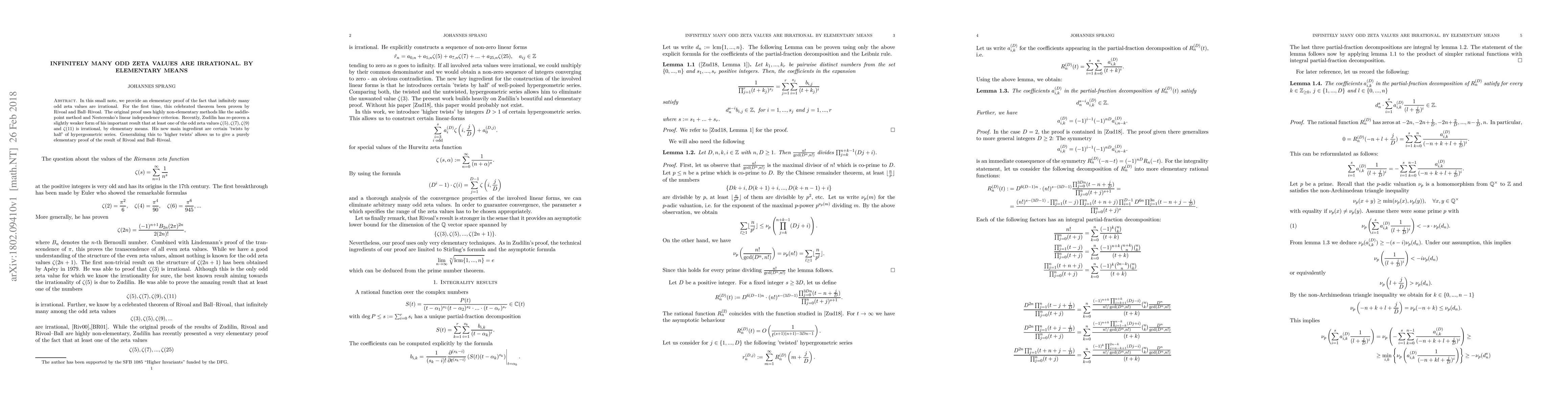In this small note, we provide an elementary proof of the fact that infinitely many odd zeta values are irrational. For the first time, this celebrated theorem been proven by Rivoal and Ball--Rivoal. The original proof uses highly non-elementary methods like the saddle-point method and Nesterenko's linear independence criterion. Recently, Zudilin has re-proven a slightly weaker form of his important result that at least one of the odd zeta values $\zeta(5),\zeta(7),\zeta(9)$ and $\zeta(11)$ is irrational, by elementary means. His new main ingredient are certain 'twists by half' of hypergeometric series. Generalizing this to 'higher twists' allows us to give a purely elementary proof of the result of Rivoal and Ball--Rivoal.