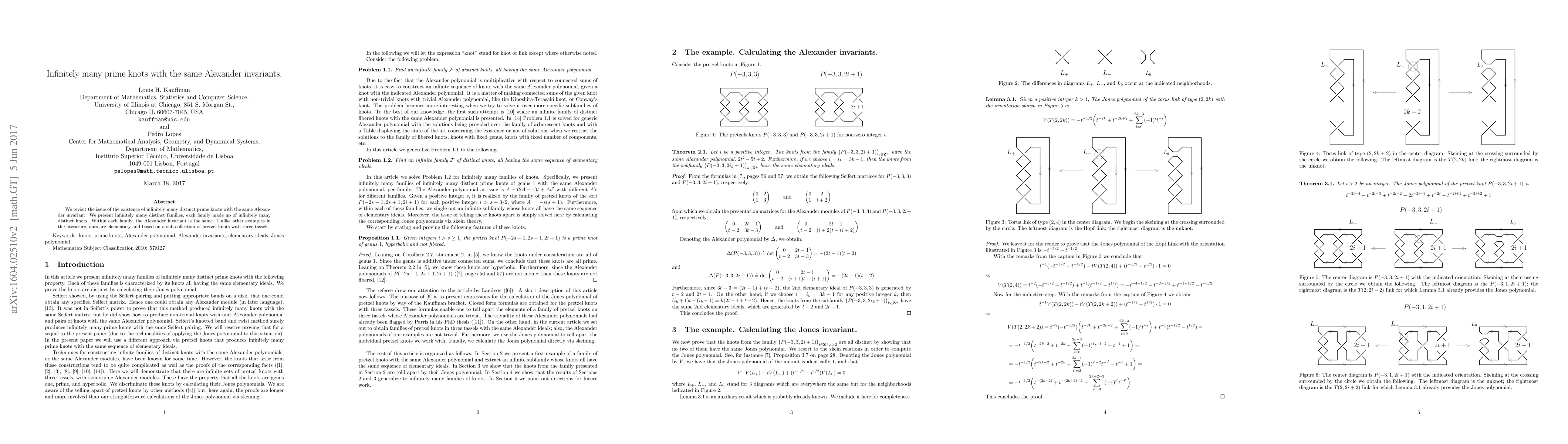 We revisit the issue of the existence of infinitely many distinct prime knots with the same Alexander invariant. We present infinitely many distinct families, each family made up of infinitely many distinct knots. Within each family, the Alexander invariant is the same. Unlike other examples in the literature, ours are elementary and based on a sub-collection of pretzel knots with three tassels.