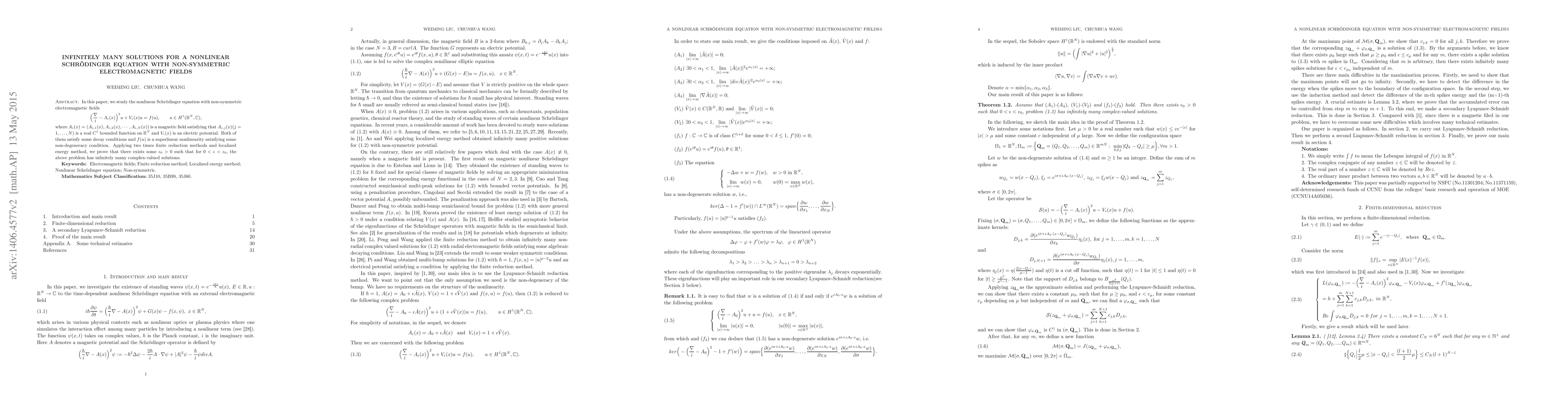 This paper investigates the nonlinear Schrödinger equation with non-symmetric electromagnetic fields, proving the existence of infinitely many solutions for certain parameter ranges using a localized energy method. The magnetic and electric fields, along with the nonlinearity, satisfy specific decay and nondegeneracy conditions.