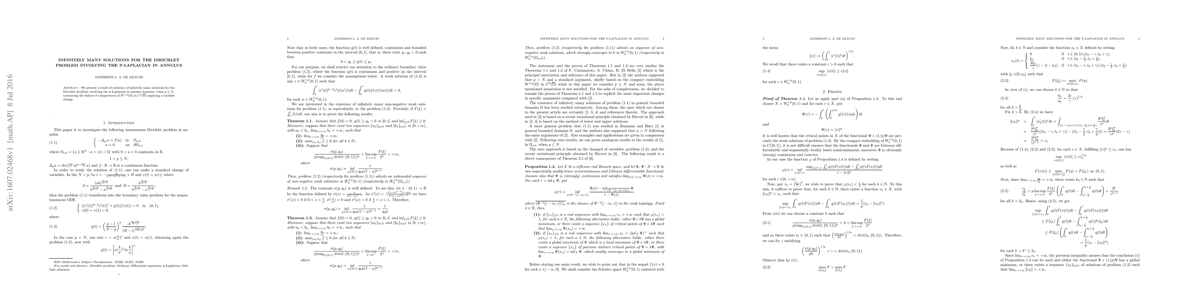 Summary: This paper demonstrates the existence of infinitely many solutions for the Dirichlet problem involving the p-Laplacian in annular domains when $p \leq N$, highlighting the lack of compactness in $W^{1,p}(\Omega)$ in $C^0(\bar{\Omega})$, and utilizes a variable change technique to achieve this result.