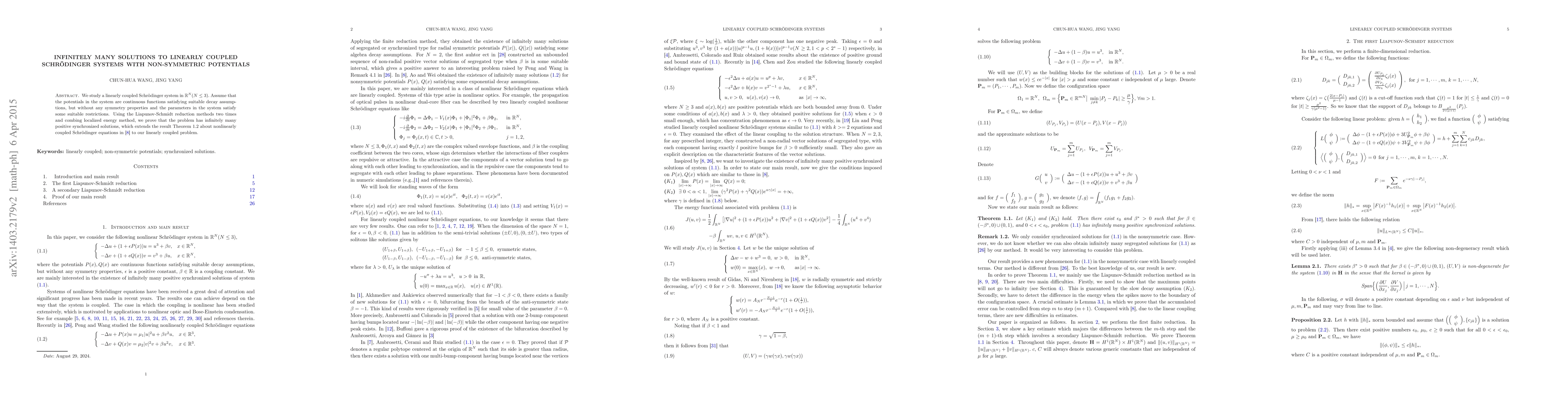 This paper investigates a linearly coupled Schrödinger system in $\R^N$ with non-symmetric continuous potentials and demonstrates, using Liapunov-Schmidt reduction and localized energy methods, the existence of infinitely many positive synchronized solutions, extending previous results for nonlinearly coupled systems.