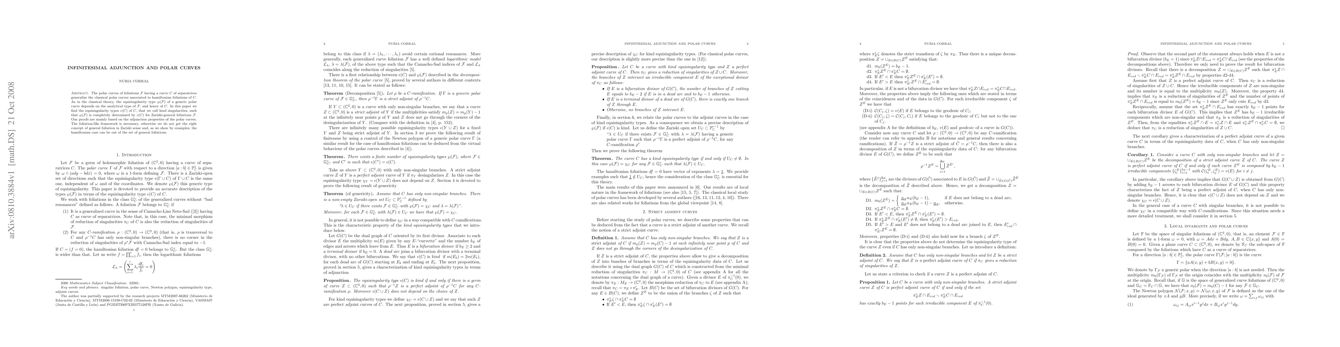 This paper explores the equisingularity types of polar curves associated with foliations having separatrices, identifying specific "kind singularities" that determine the equisingularity type for Zariski-general foliations. The study relies on the adjunction properties of the polar curves to achieve these results.